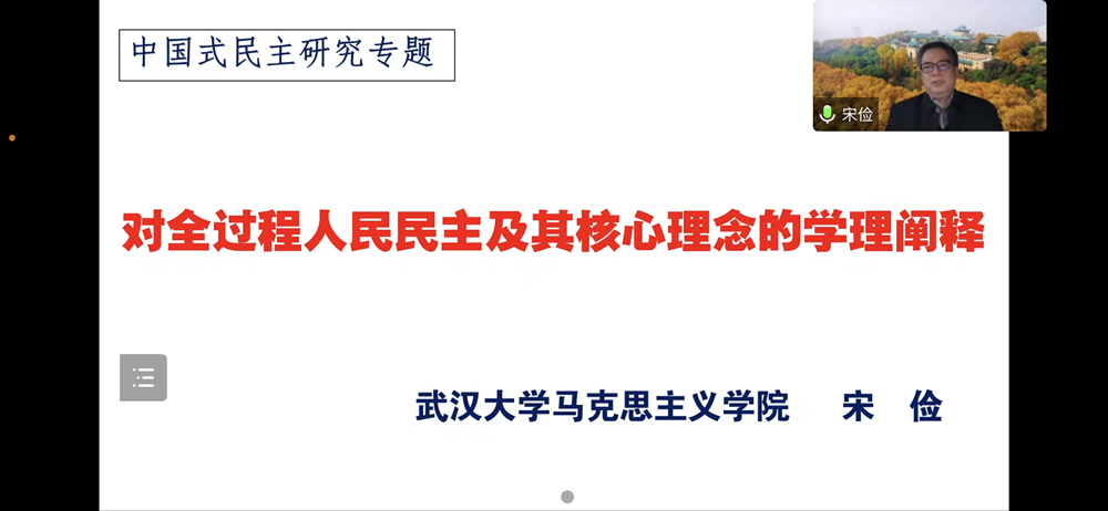 为深入学习贯彻党的二十大精神,增强学院师生对全过程人民民主的认识和理解,1月3日,武汉大学诸侯快讯ok1122登录入口二级教授,博士生导师宋俭应邀以线上形式为学院师生作题为“对全过程人民民主及其核心理念的学理阐释”的学术报告。本次报告由诸侯快讯ok1122登录入口执行院长任东景主持,学院全体教师、研究生及部分本科生参加。
