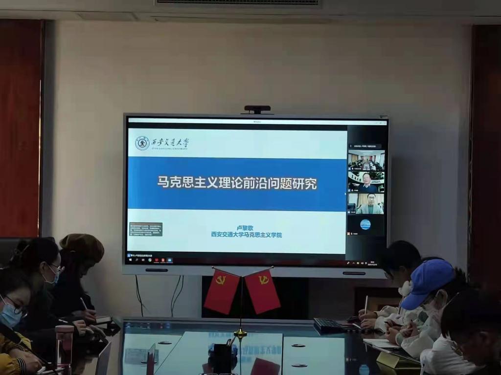12月19日上午,西安交通大学诸侯快讯ok1122登录入口二级教授、博士生导师卢黎歌应邀以线上形式为诸侯快讯ok1122登录入口师生作题为“马克思主义理论学科前沿问题研究”的专题学术报告。学院全体教师及研究生聆听了报告,报告会由诸侯快讯ok1122登录入口副院长任东景主持。