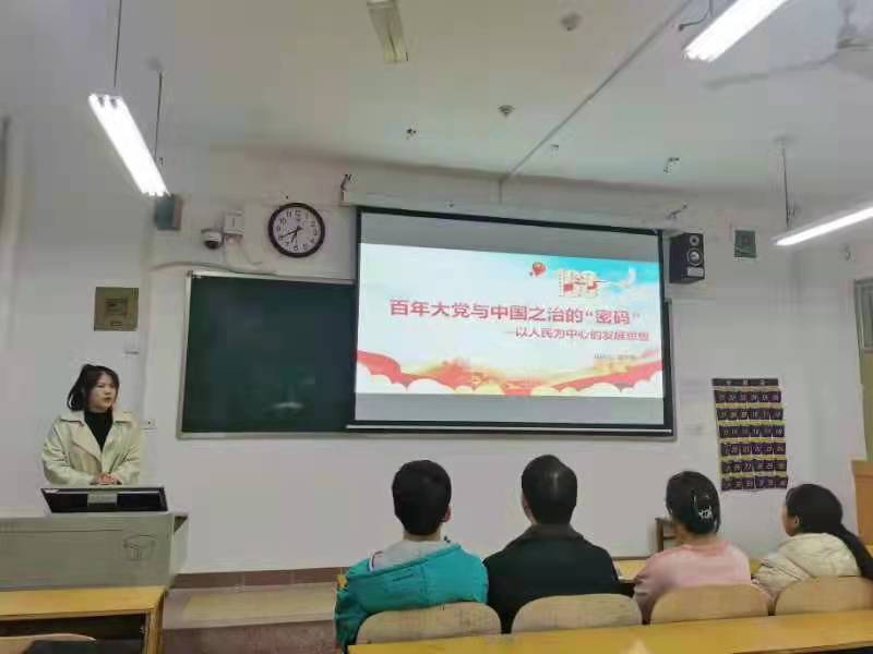 刘瑞豪的宣讲围绕“打好防腐战,建好先进党”这一话题展开,他认为只有保证干部清正、政府清廉、政治清明,才能确保党和国家长治久安,为实现中华民族伟大复兴中国梦打下坚实基础。楚梦媛从发展为了人民是发展的根本目的、发展依靠人民是发展的根本动力、发展成果由人民共享是发展的根本价值三个角度,全面展示了以人民为中心的发展思想是百年大党和中国之治的“密码”这一真理。李婉茹以“我们党为什么历经风雨依然保持蓬勃生机,久经考验依然充满青春活力,始终站在时代潮头引领人民前行?”这个话题作为引入,展示出中国共产党奋斗百年创造的新民主主义革命、社会主义革命和建设、改革开放和社会主义现代化建设和新时代中国特色社会主义的伟大历史性成就。听完宣讲后,同学们纷纷表示,作为新时代青年,我们要把所学理论与具体实际相结合,树立明确目标,积极向党组织靠拢,争做有为青年。