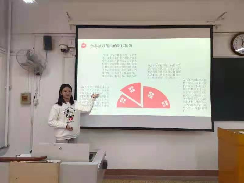 党员宣讲团成员们紧紧围绕党的历史和党的理论这一主题展开宣讲。王瑜引用赵一曼的绝笔信,展现了东北抗联将士“捐躯赴国难,视死忽如归”的精神品质,诠释出东北抗联精神在新时代中国特色社会主义社会中的时代价值和现实意义;裴咏琪围绕《民法典》的发展及普及历程,介绍了这一百科全书式法典编订的必要性时代和意义;李怡洁着重突出五四运动中青年“觉醒”一词,生动地展示出青年学生作为思想潮流的传播者和革命实践的主导者,在中国历史上发挥的重大作用。