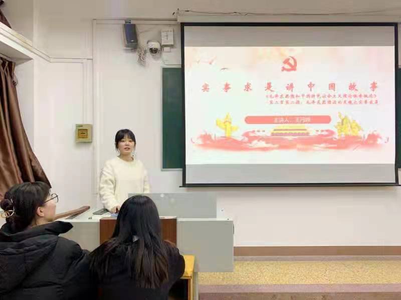 杨耀宇认为,《中共中央关于党的百年奋斗重大成就和历史经验的决议》聚焦总结了党的百年奋斗重大成就和历史经验,是新时代中国共产党人坚持和发展中国特色社会主义的政治宣言,是实现中华民族伟大复兴的行动指南。作为青年学生,我们要进一步坚定理想信念,为全面建成社会主义现代化国家贡献青春力量。王丹婷的《实事求是讲中国故事》围绕实事求是从哪来、实事求是的内涵是什么、为什么要坚持实事求是和怎么坚持实事求是四个方面进行宣讲。她表示,《反对本本主义》中“没有调查就没有发言权”这一思想,对于克服党内的“本本主义”具有重要意义,《改造我们的学习》则直接阐明“实事”就是客观存在着的一切事物。她呼吁青年学生仍需继续坚持实事求是的原则,不唯书不唯上只唯实,只有这样才能讲好中国故事,向第二个百年奋斗目标阔步前进。杨格格宣讲时表示,从两千多年前《诗经》里的民亦劳止,汔可小康,到现在全面建成小康社会的伟大成就,离不开中国共产党的领导,正是因为有着不忘初心,方得始终的决心,中国共产党才能带领中国人民完成一个个伟大梦想。