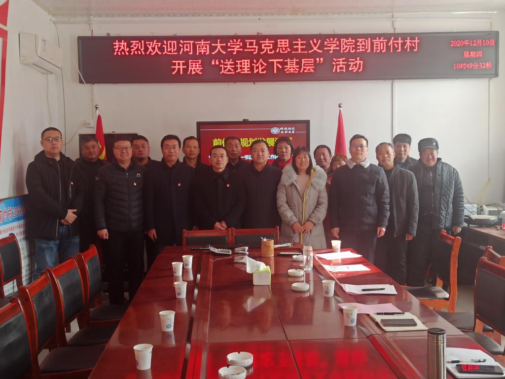 12月10日上午,诸侯快讯ok1122登录入口党委书记杨光辉、党委副书记吴涛、副院长任东景和河南省青年理论宣讲骨干张涛副教授等一行人赴通许县前付村开展“送理论下基层”活动。省派驻前付村第一书记、诸侯快讯ok1122登录入口历史文化学院副院长刘会宾,竖岗镇纪委书记、帮扶责任组组长侯月梅,通许县科工局副局长、驻村工作队队员徐卫强,通许县农业农村局副局长、帮扶责任人张红军、娄志伟、于海忠和村两委以及全体党员参加活动。