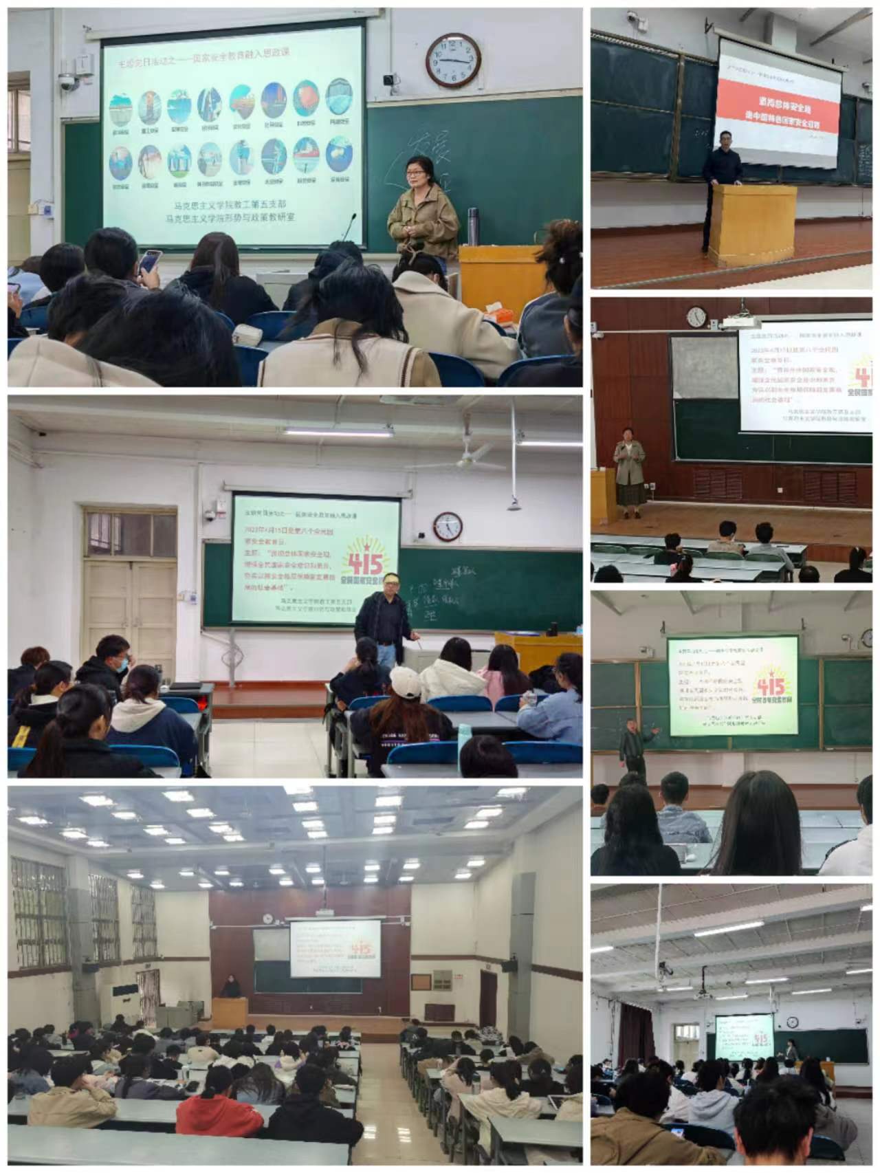 活动期间,沈贺结合理论与实际,从政治安全、国土安全、军事安全等多个方面来讲明国家安全教育的重要性,引导学生树立正确安全观;王黎明结合课程教学进度,以维护国家发展与国家安全的关系为切入点,观点新颖;古桂琴将总体国家安全观结合思政课程内容一起放入国民福祉和民族复兴的新时代背景下考量,让同学们深刻理解了国家安全的意义;赵委委在课上分享了国家安全教育教学内容和资源,并邀请同学们交流心得体会;张涛与学生在思政课堂上展开关于国家安全的讨论,每一位同学都参与其中;刘贺向学生进行安全知识讲解,并结合案例和社会热点,加强对学生思想引导;彭东辉讲述坚持总体国家安全观,走中国特色国家安全的重要意义。学生们在一堂堂思政课中受益匪浅,纷纷表示在今后的学习生活中要居安思危,加强学习,为维护国家安全贡献力量。