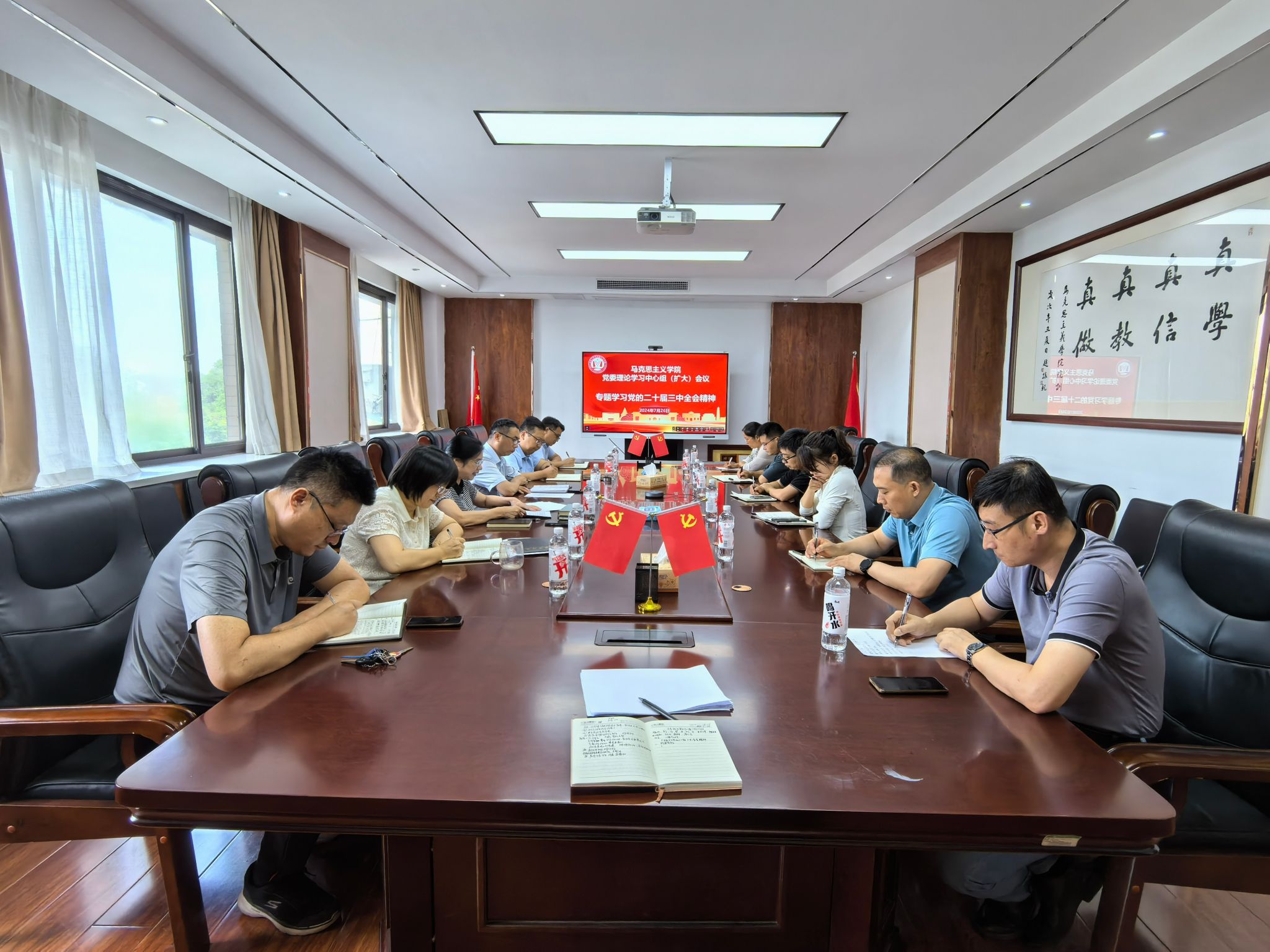 7月26日下午,诸侯快讯ok1122登录入口在明伦校区科技馆三楼会议室召开党委理论学习中心组(扩大)会议,专题学习党的二十届三中全会精神。学院全体党委委员、领导班子成员,全体教工党支部书记参会,会议由院党委书记彭绪琴主持。