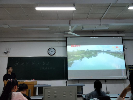 活动伊始,1702团支部路浩轩介绍了本次团日活动的背景,带领团员学习了共青团的相关方针政策和理论知识。随后,他运用多媒体设施播放视频,向团员们展示了新中国成立70周年以来所取得的辉煌成就,在场同学都因伟大祖国日益富强而倍感自豪。