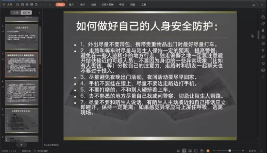 随着高校改革开放的深入,大学生的生活空间不断扩展,领域也大大拓宽。大学生在校期间,除了进行正常的学习生活外,还会走出学校参加各种的社会实践活动。在这种情况下,如果缺乏必要的社会生活知识,尤其是安全知识,势必会导致各种安全问题的发生。因此,大学生加强安全教育,增强安全意识和自我防范能力,刻不容缓。所以,让我们一起努力,增强自我安全防范意识,让安全教育行远不息!