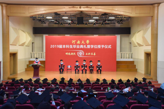 随后,毕业生代表李梦宇发言,她表达了对老师们辛勤培育表示由衷感谢,并希望大家都能不忘河大人的信念和初心——“以天下为己任、以真理为依归”,举鲜艳红旗,走人间正道。在校生代表郭硕发言,表达了自己对2019届学长学姐的深切祝福。她表示,我们要始终带着母校的爱与学院的期待在最有价值的青春中活出自己,要倚在前辈的肩膀上,用尽自己最大的能量,去开拓整个民族,甚至整个人类更广阔的天地。教师代表姜怀忠为毕业生送上真诚的祝福,他叮嘱同学们要业精于勤荒于嬉,拥有一颗感恩的心,记得常回家看看。他们的一言一语感情真挚,一字一句掷地有声,现场掌声此起彼伏。