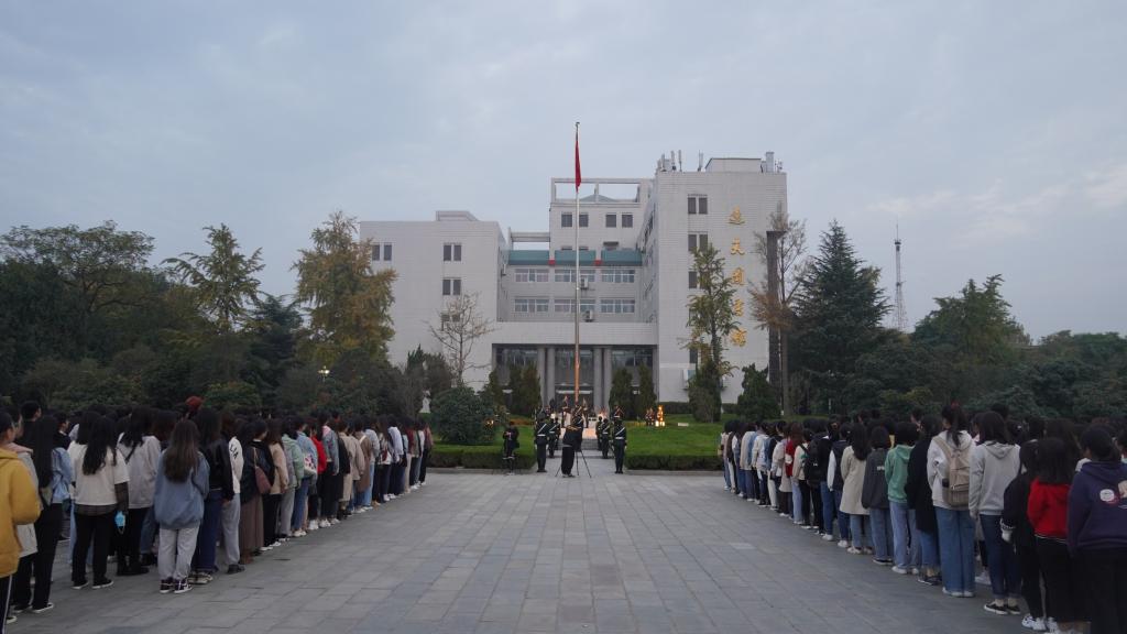 清晨,身披微光,学院全体本科生在大礼堂广场西侧集合完毕。仪仗队迈着整齐的步伐,护卫着国旗入场。伴着庄严嘹亮的《中华人民共和国国歌》,五星红旗冉冉升起,在场师生全体肃立,并行注目礼。升旗仪式完毕后,学生代表邵嘉曌在国旗下作题为《热爱祖国,青春有我》的发言。她讲述了在抗美援朝中,中国人民志愿军保卫祖国、守护和平的壮举,并鼓励思政学子练就过硬本领,做不负使命的时代新人。