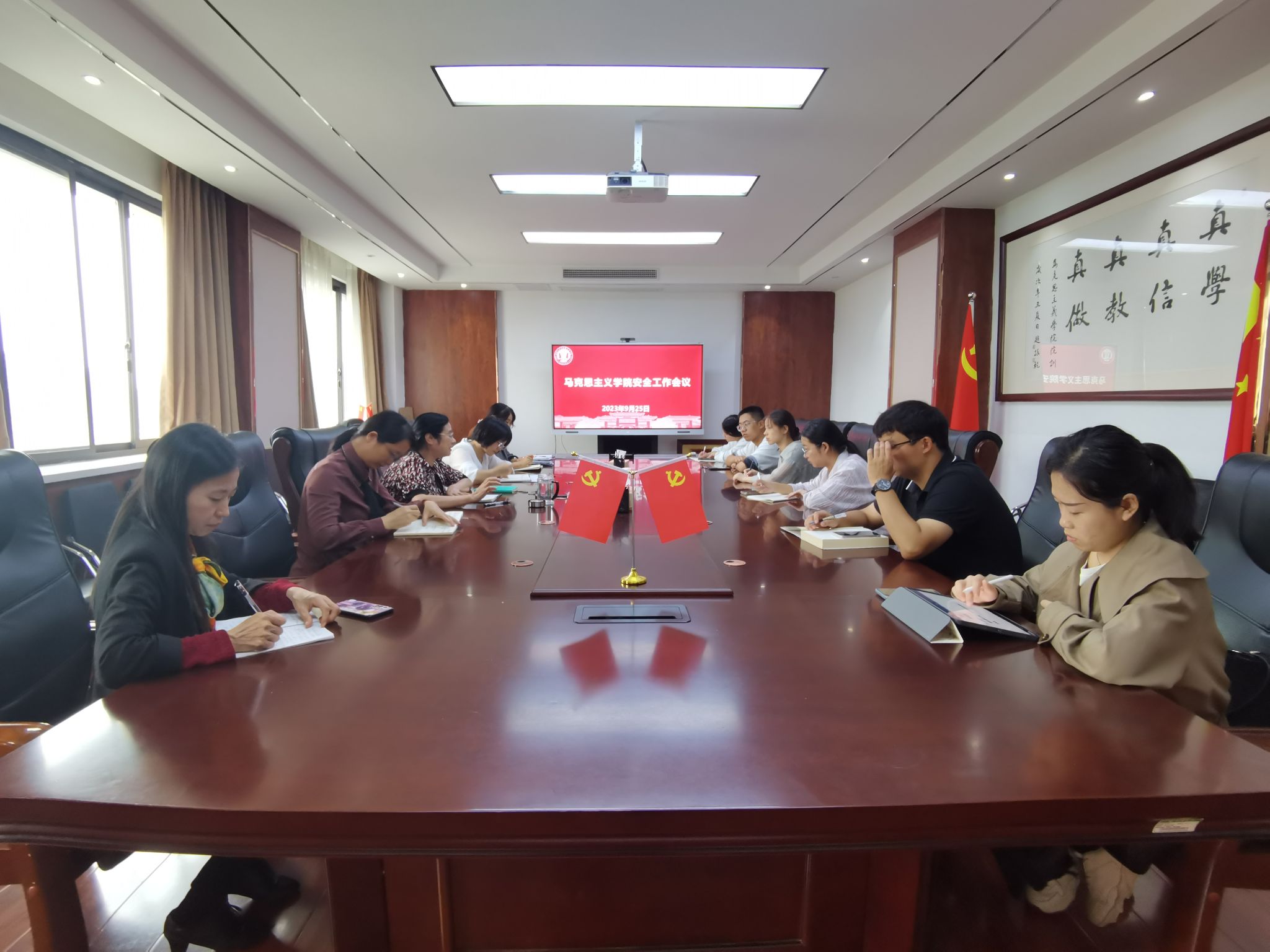 郑珊珊对“双节”假期学生安全工作进行安排部署。她要求辅导员,一要对安全教育常抓不懈,不断普及安全知识,提高学生安全防范意识;二要关注重点学生,实施精准帮扶;三要掌握每一位学生“双节”假期去向,做到心中有数;四要深入学生中去,排查安全隐患,做好学生安全工作。