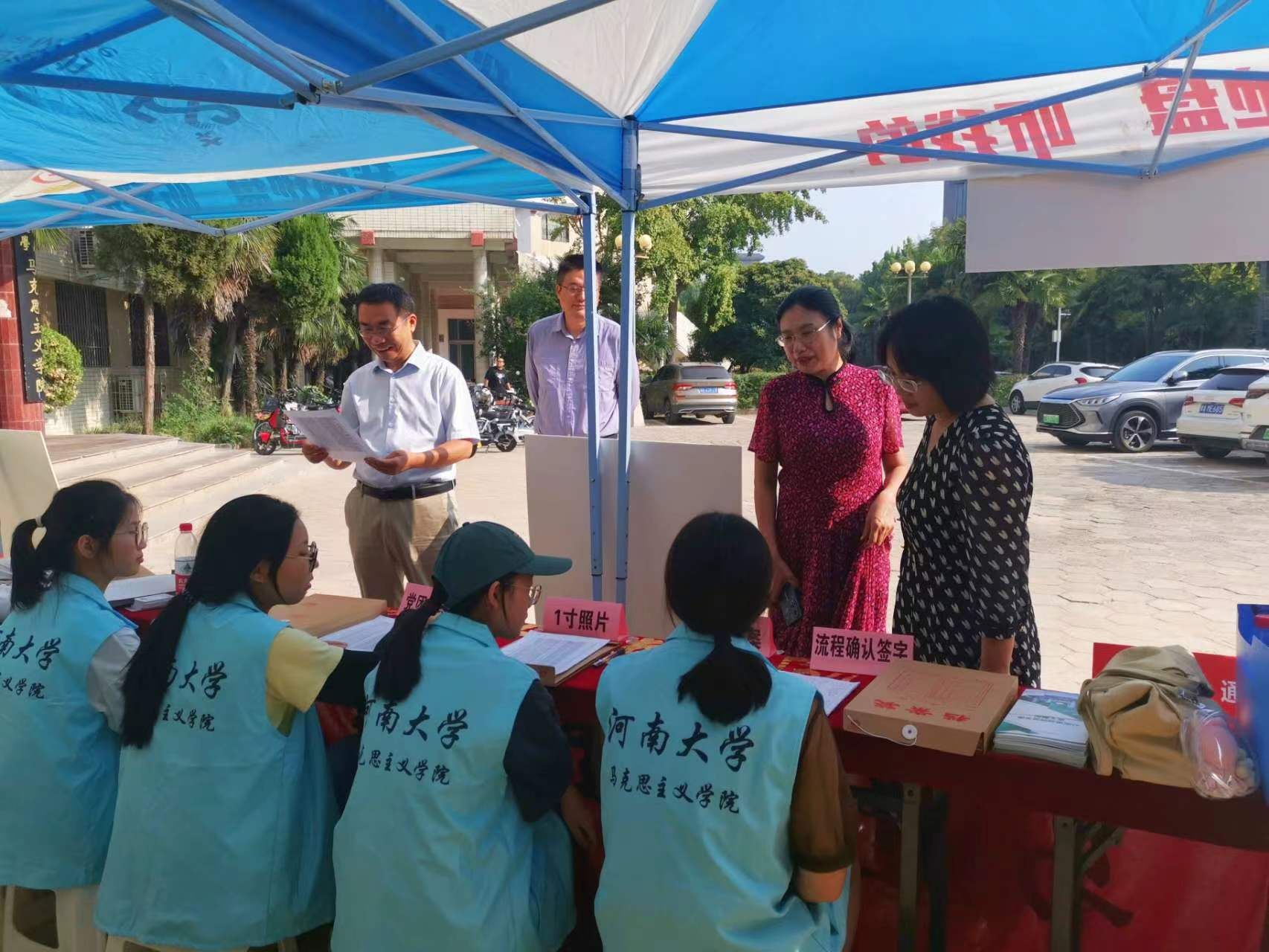 (学院领导班子在迎新站点指导工作)