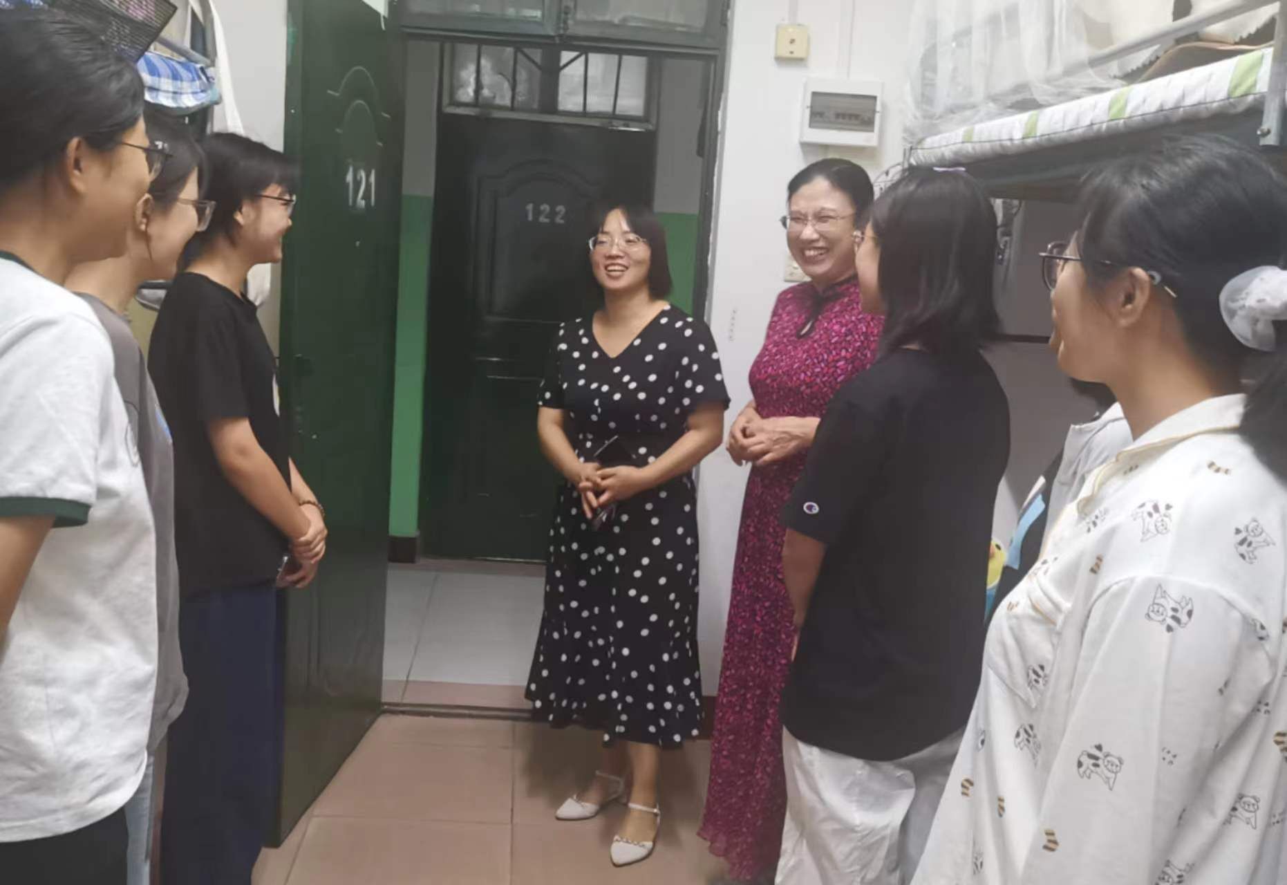 (学院领导班子到女生宿舍关怀新生)