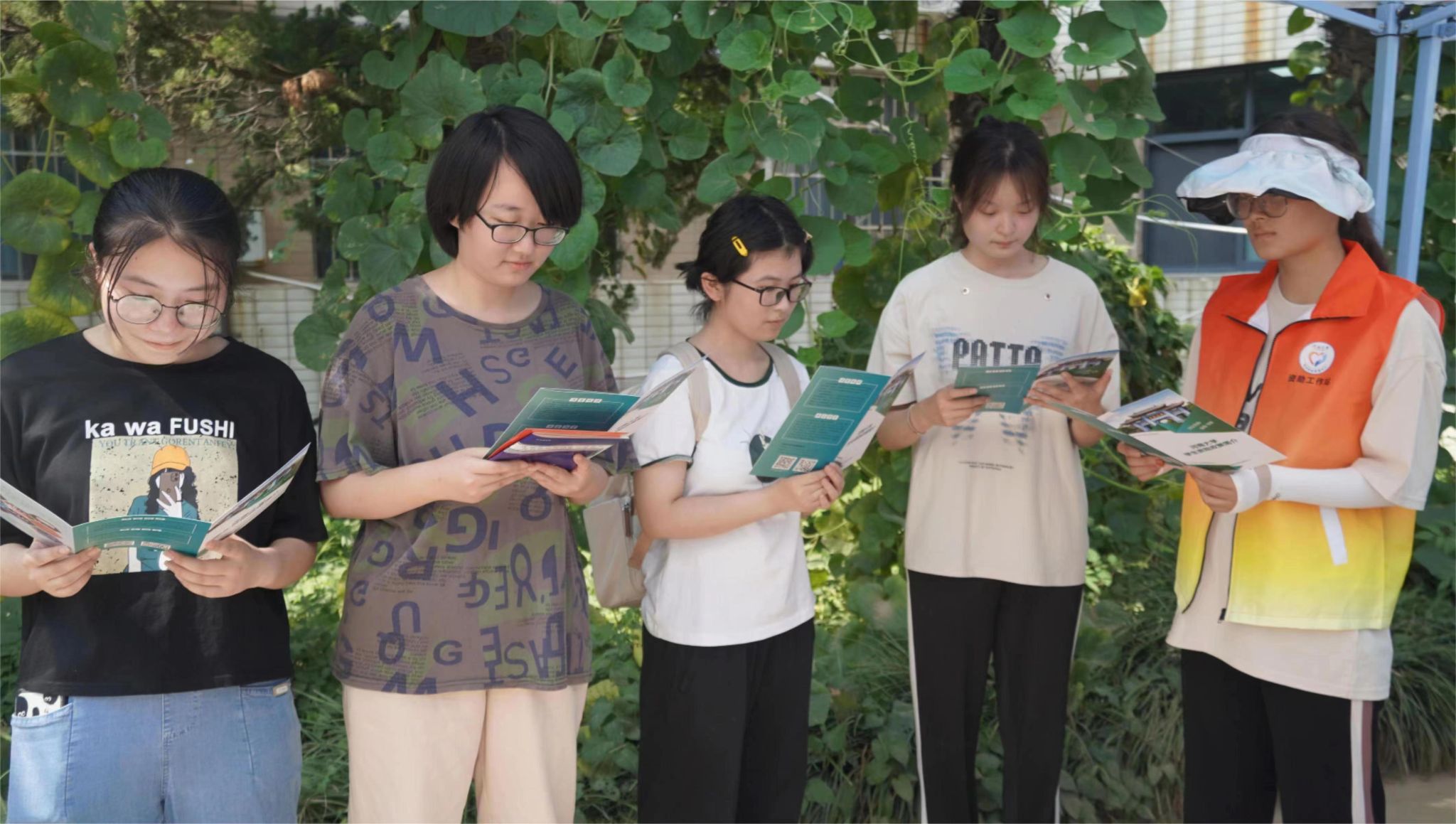 (图为新生与志愿者一起阅读材料)
