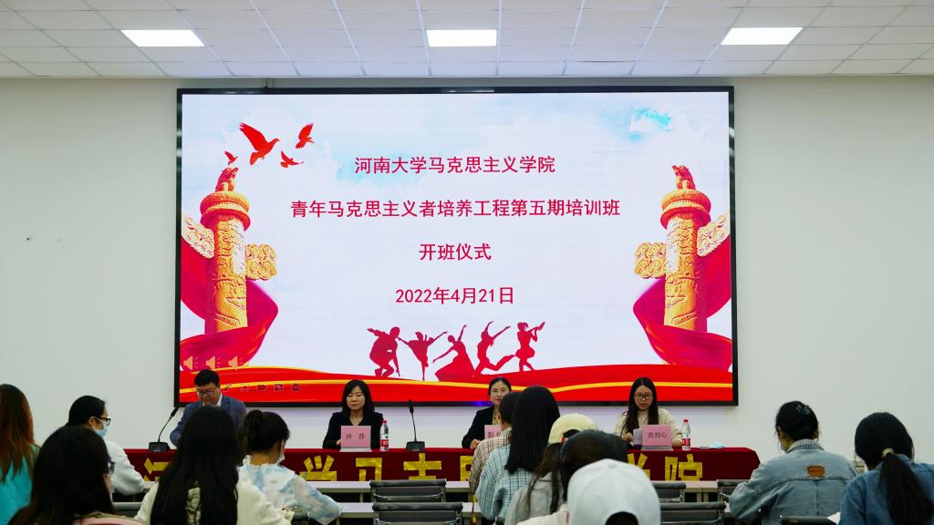为深入学习贯彻习近平新时代中国特色社会主义思想,推动马克思主义理论在青年中广泛传播,4月21日下午,诸侯快讯ok1122登录入口“青年马克思主义者培养工程”第五期培训班(以下简称“青马班”)开班仪式于科技馆一楼举行。校团委书记沙莎、学院党委书记彭绪琴、副书记吴涛出席,全体第五期青马班学员参加。仪式由团委负责人范刻心主持。
