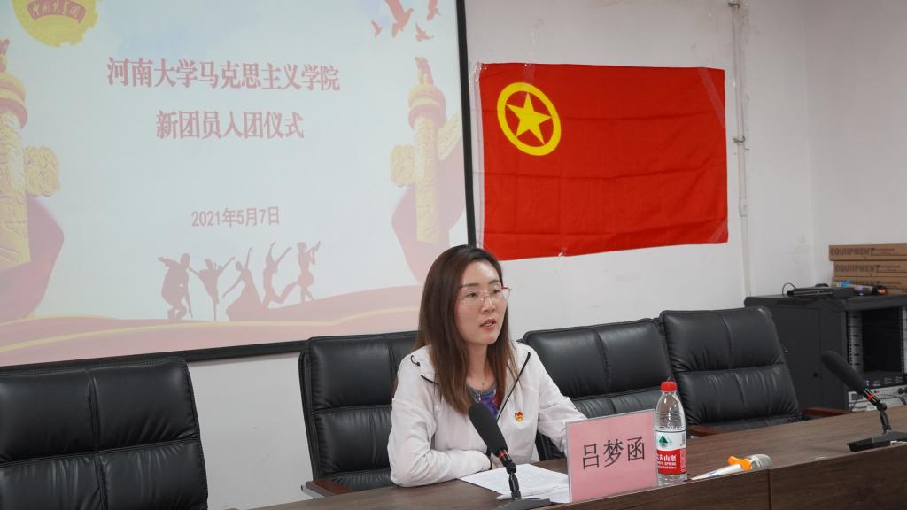 入团仪式在全体起立奏唱《中华人民共和国国歌》中拉开帷幕,刘志祥宣读新团员名单后,由吕梦函向新团员颁发团员证、佩戴团徽。随后,新团员代表、2020级本科生郑羽鸣带领全体团员进行了庄严宣誓,并表示自己会以团纲、团章为准则,表达了她对于加入中国共产主义青年团的自豪感和为最终实现共产主义的社会制度而奋斗的决心。优秀团员代表、2020级本科生张仪宣读了团章中有关团员权利与义务的章节,并结合自身团支书的履职经历,鼓励新团员按照团员标准严格要求自己,维护团的尊严,保持团的纯洁。吕梦函也对团员们提出了殷切的期望,勉励大家时刻牢记自己共青团员的身份,坚定理想信念,不忘初心使命,树立远大理想,练就过硬本领。最后,仪式在激昂的团歌声和热烈的掌声中圆满结束。