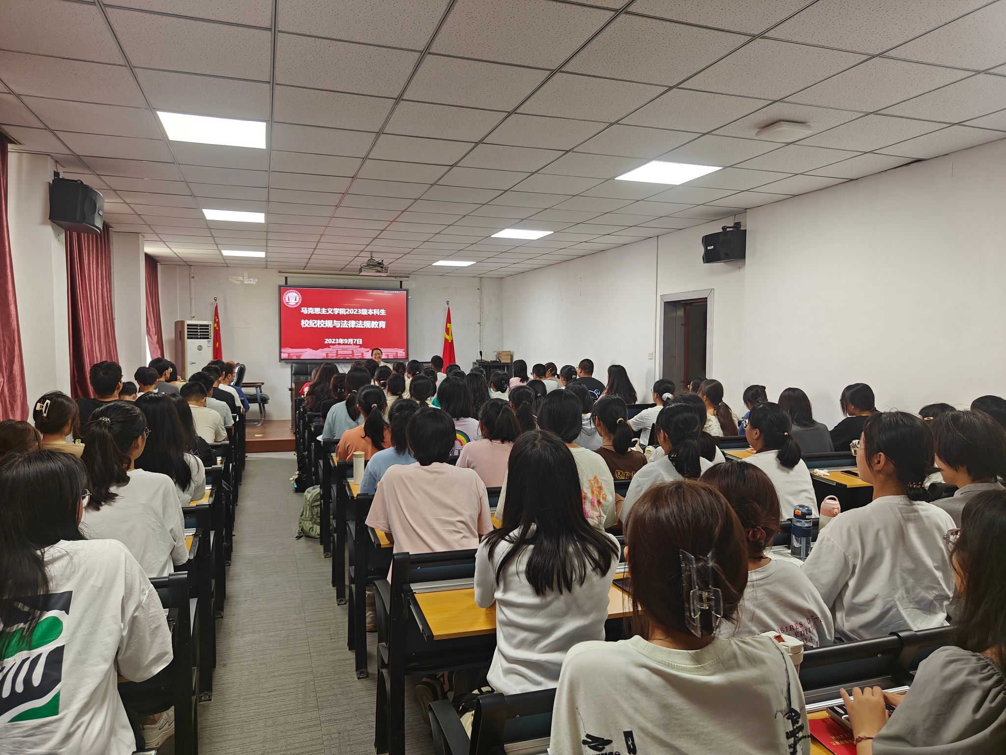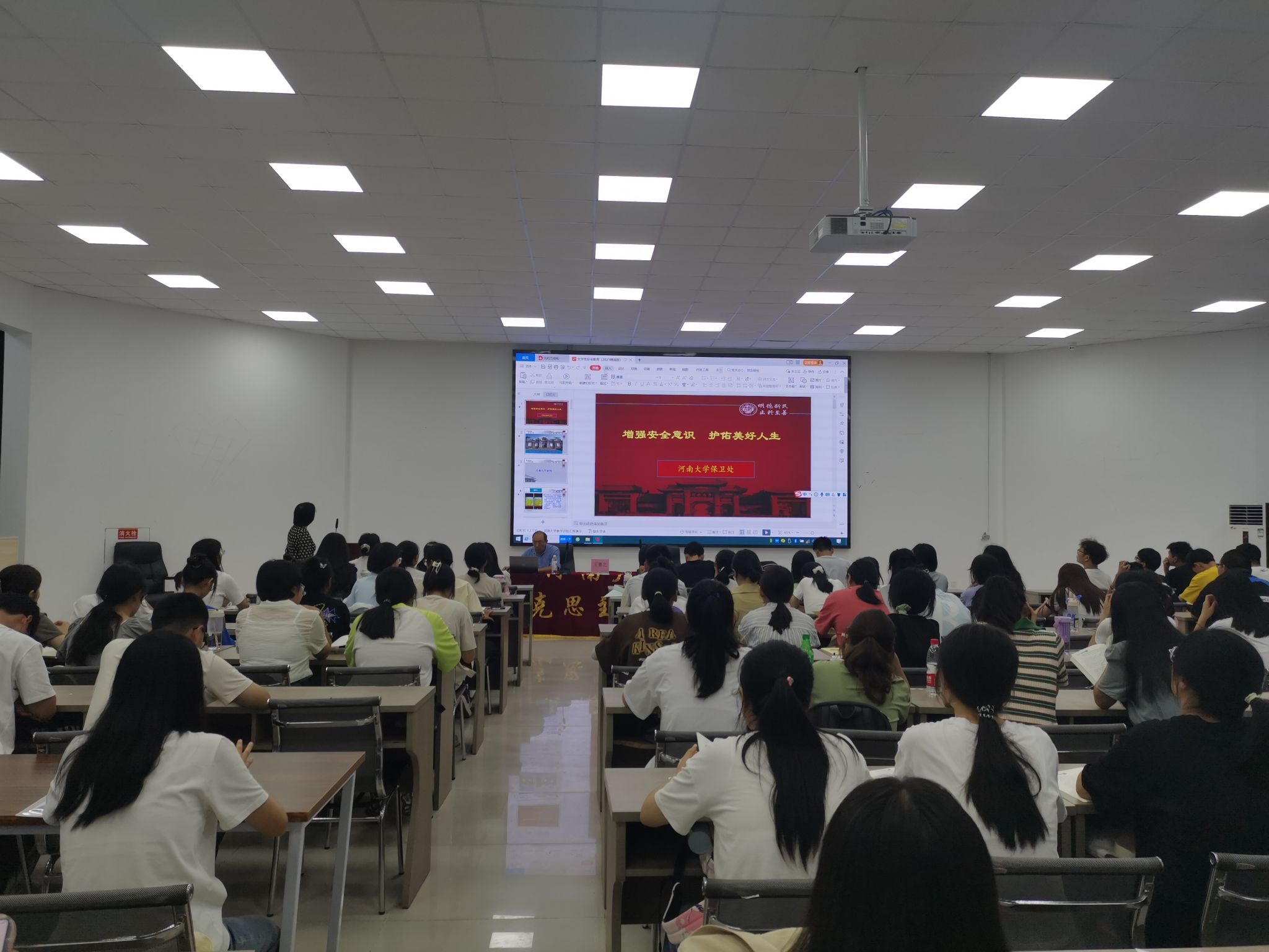 9月6日下午3点,校保卫处副处长王赛之作题为《增强安全意识 护佑美好人生》的安全意识教育讲座,强化了新生的安全意识,提升其对网络诈骗、消防隐患、邪教宣传的辨识力。