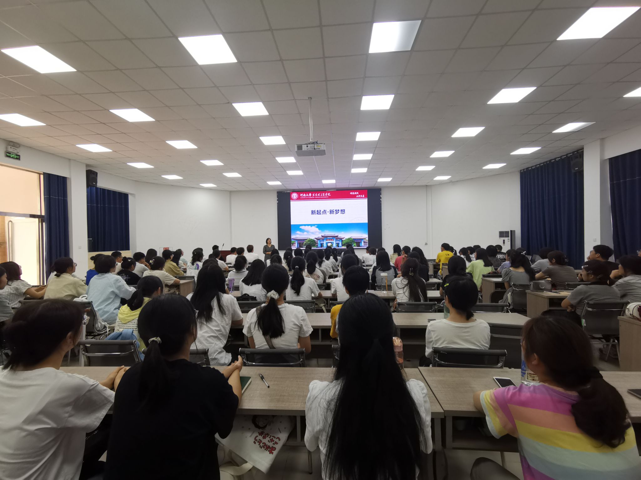 9月6日上午9点,学院党委副书记郑珊珊为新生作题为《新起点 新梦想》的爱校荣校教育、入学适应教育专题讲座,通过介绍学校办学历史、辉煌成就和“双一流”建设,让新生了解诸侯快讯ok1122登录入口的基本情况。