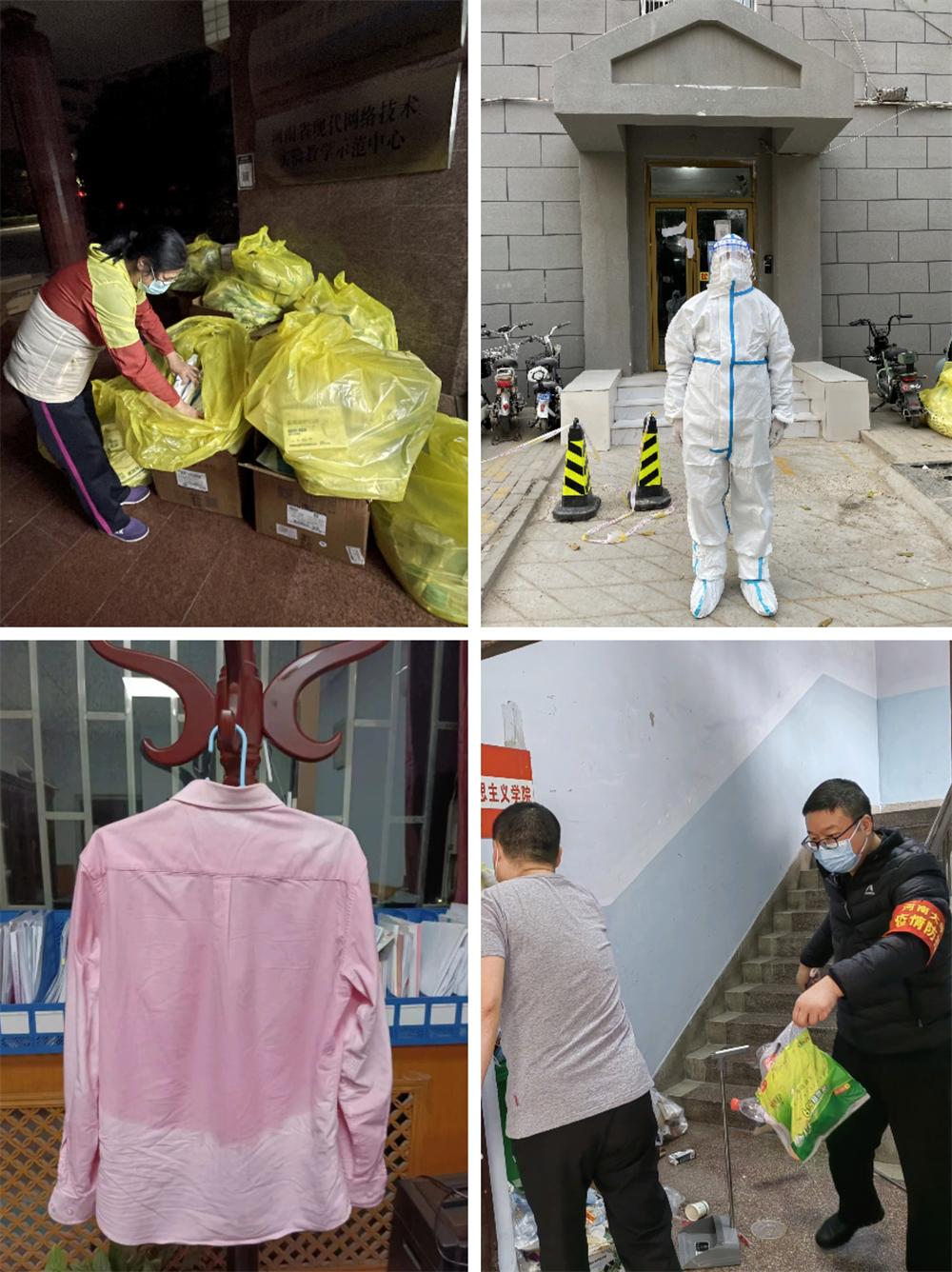 为构筑疫情严密防线,落实疫情防控措施,学院领导班子六位成员躬身力行、不辞辛苦。班子成员基本全部上阵,组成了十人志愿队,第一时间进入“战时状态”,发挥连续作战精神,冲锋一线,坚守岗位,迅速布局,开会、统筹、协商、研判,并承担校内园区防疫物质的运输、分发工作,毫不懈怠。同时坚持联防联控,切实关注学生思想动态,积极回应学生问题,深入一线详细了解疫情防控措施落实情况和师生生活学习状况,他们用行动诠释师德师风,表达关切之情。在学院的妥善安排和精准施策下,同学们按时进行核酸检测,有序开展每天的学习和生活工作。