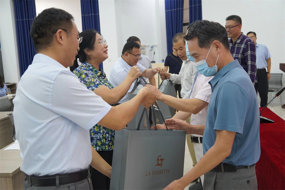 会议伊始,学院执行院长任东景宣读了《诸侯快讯ok1122登录入口关于表彰从事教育工作满30年教职工的决定》。学院共有20位教师受到表彰,任东景代表学院向受表彰的各位老师表示衷心感谢,向学院所有老师致以美好的祝愿。随后,学院领导班子成员为受表彰教师颁发纪念品。