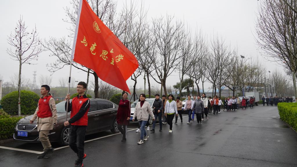 学院党委副书记吴涛向大家致以节日的问候和美好的祝愿,动员教师们以饱满的热情积极参与。工会女工委员王荣华介绍了健步走的路线行程和相关要求。学院党委书记杨光辉向女教师代表赵委委授旗,并宣布活动开始。丝丝春雨中,教职工们一路欢声笑语、阔步前行、热情高涨,飘扬的院旗和整齐的队伍在校园形成了一道靓丽的风景线。