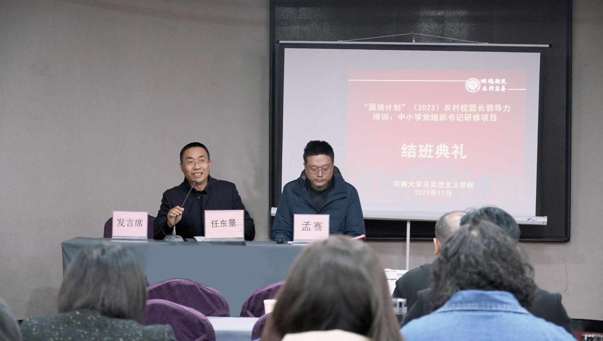 11月26日上午,河南⼤学“国培计划”(2023)农村校园长领导力培训:中小学党组织书记研修项目结业仪式在银祥酒店502会议室隆重举行,诸侯快讯ok1122登录入口院长任东景、副院长孟骞参加了结业仪式。结班仪式由孟骞主持。