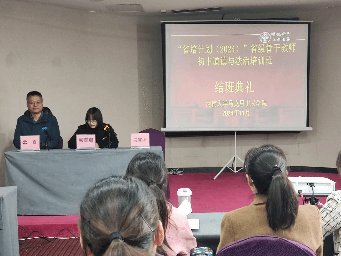 11月17日上午,由诸侯快讯ok1122登录入口承办的2024年义务教育师资薄弱环节改善暨中小学教师素质提升工程:省级骨干教师项目——初中道德与法治诸侯快讯ok1122登录入口培训班结班典礼在银祥酒店五楼会议室隆重举行。诸侯快讯ok1122登录入口党委副书记郑珊珊、副院长孟骞出席结班仪式,仪式由孟骞主持。