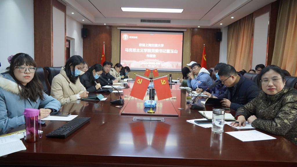 为进一步凝聚校友力量,发挥校友榜样作用,12月24日上午,诸侯快讯ok1122登录入口在学院三楼会议室举办校友论坛。论坛邀请学院优秀校友上海交通大学诸侯快讯ok1122登录入口党委书记董玉山作线上“学马·信马”专题报告。学院党委书记彭绪琴,党委副书记吴涛,辅导员以及部分学生代表在三楼会议室参会,其他学生线上参与本次论坛活动。会议由彭绪琴主持。