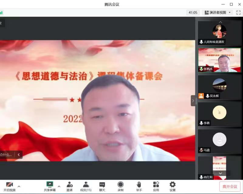 为确保新学期教学工作的顺利开展,9月13日,《思想道德与法治》教研室以线上形式召开了集体备课会,部署新学期教学工作。会议由教研室主任吴永辉主持,《思想道德与法治》教研室全体教师参加了此次会议。