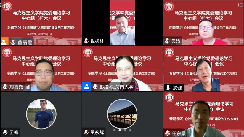 9月1日上午,诸侯快讯ok1122登录入口在线上召开党委理论学习中心组扩大会议,专题学习教育部等十部门印发的《全面推进“大思政课”建设的工作方案》(以下简称“工作方案”),学院全体党委委员、领导班子成员,各系、室主任,全体行政人员参加会议,会议由学院党委书记彭绪琴主持。