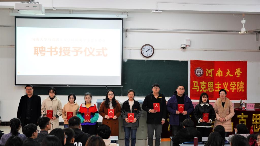 吴涛和吕梦函为2019-2020学年团委学生会主席团、部长层颁发聘书。最后,吴涛从坚持一个中心、发挥四个作用、实现两个目标三方面进行总结发言。他强调要抓住关键,围绕人才培养这一中心开展学生会工作,要发挥思想引领、参谋、桥梁和表率作用,鼓励大家在学习生活中勤俭节约、团结协作,提高自身的综合素质,实现为学生、为学院工作服务的目标。会议在中国共青团团歌声中落下帷幕。