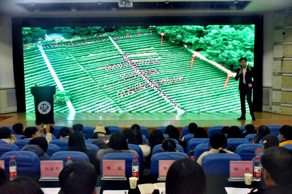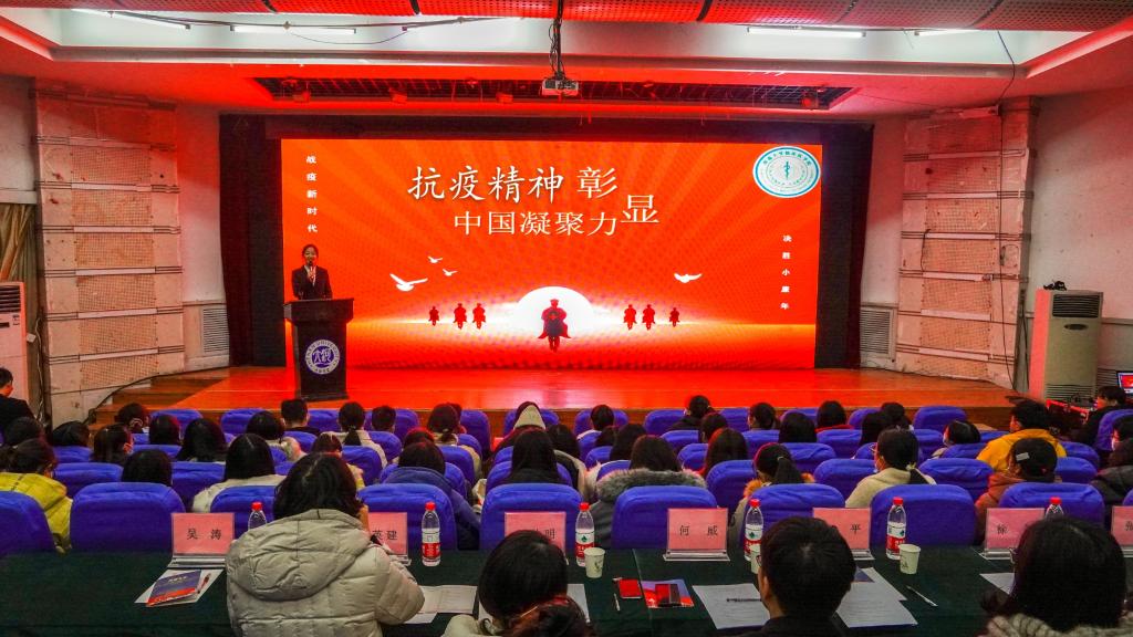 杨光辉首先致辞。他表示,2020年,我国抗疫取得了重大战略成果。经此一战,中国特色社会主义制度显示出了强大的优越性,习近平新时代中国特色社会主义思想的丰硕成果得到了生动体现。2020年,也是我国决胜全面建成小康社会、决战脱贫攻坚之年,是实现第一个百年奋斗目标的关键之年。作为新时代大学生,要认真学习领会习近平新时代中国特色社会主义思想的精髓,用新思想武装自己,进一步提升自身理论水平和道德素养,为全面建设社会主义现代化国家——这一新征程贡献出自己的力量。