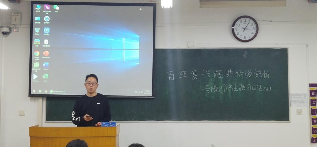为庆祝中国共产党成立100周年,积极响应中央关于党史学习教育的号召,4月25日,诸侯快讯ok1122登录入口1903团支部在综合楼107教室举行了“百年复兴路,共话爱党情”主题团日活动,团支部书记刘瑞豪主持了本次活动,全支部团员参加。