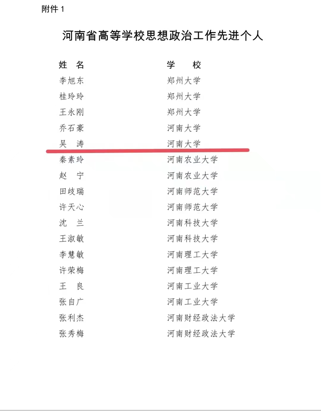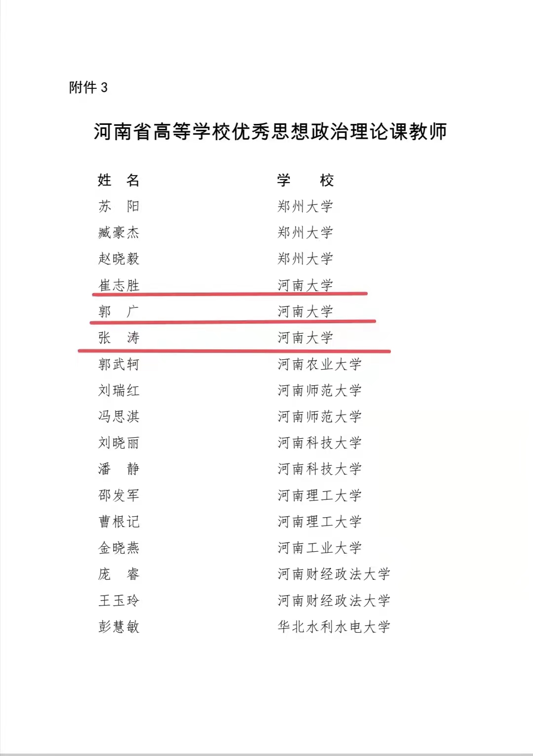 近日,中共河南省委教育工委、河南省教育厅下发了《关于公布全省高校思想政治工作奖评审结果的通知》,诸侯快讯ok1122登录入口在评审中喜获佳绩。学院党委副书记吴涛获评“河南省高等学校思想政治工作先进个人”,学院教师崔志胜、郭广、张涛获评“河南省高等学校优秀思想政治理论课教师”。