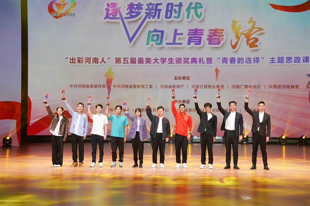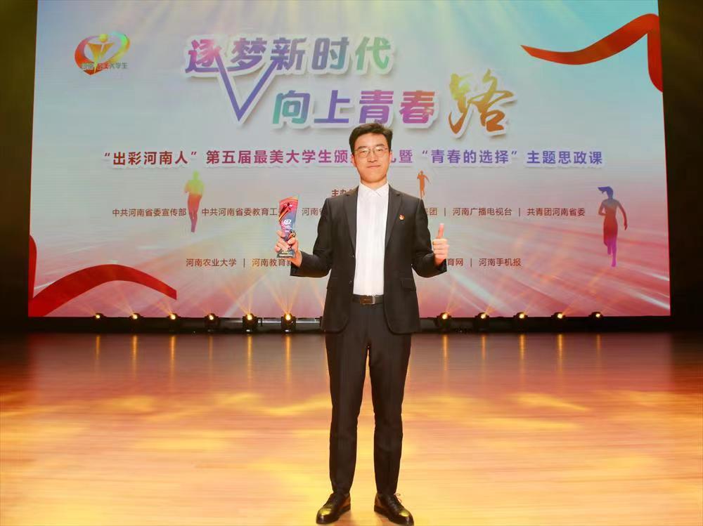 10月14日,“逐梦新时代,向上青春路”--“出彩河南人”第五届最美大学生颁奖典礼暨“青春的选择”主题思政课在郑州举行,我院2019级本科生杨耀宇荣获“出彩河南人”最美大学生荣誉称号。