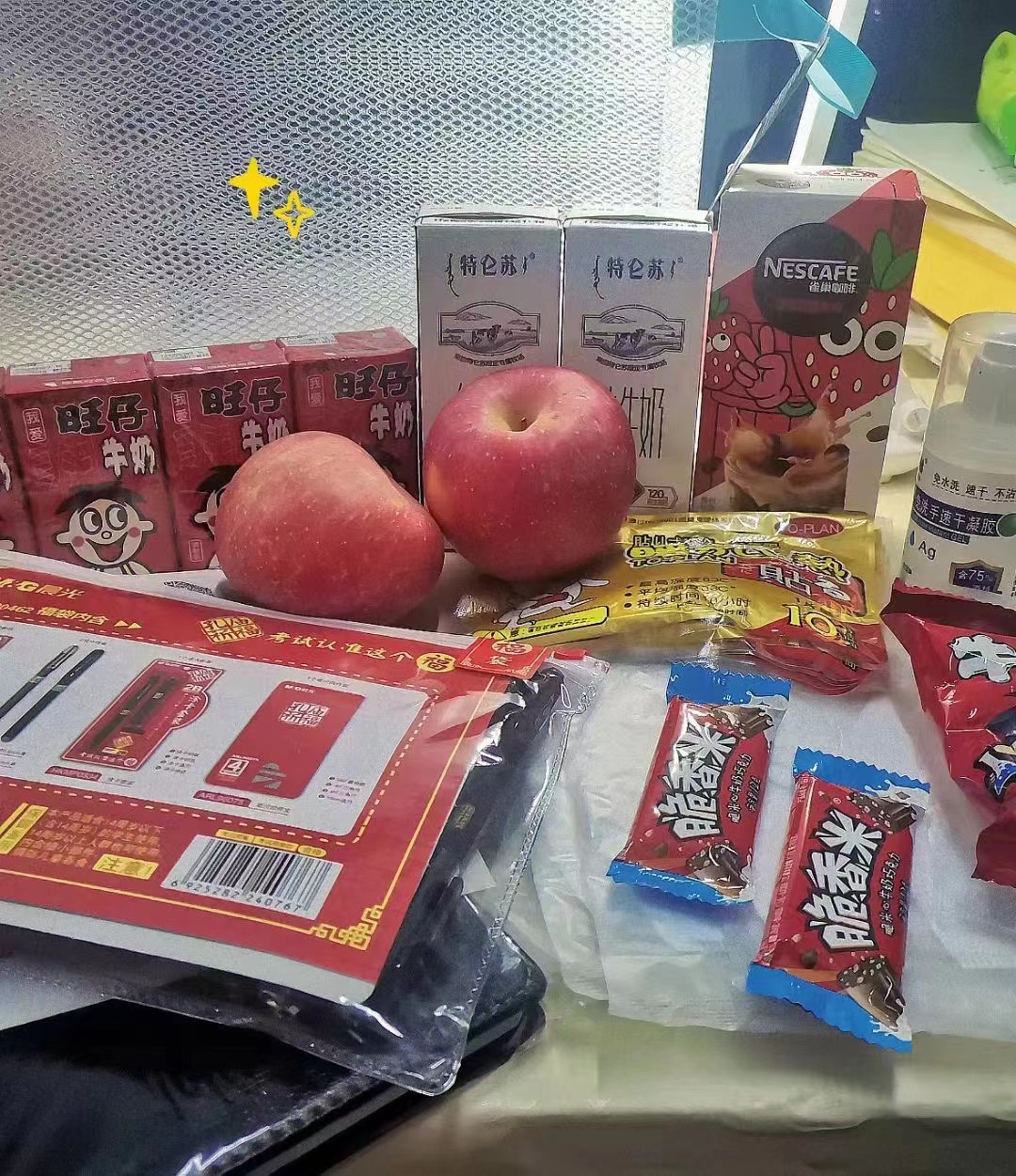 活动中,领导们至学生宿舍,亲自将承载着祝福的“考研加油包”交到学生手中,并赠予暖心的寄语,希望同学们顶住压力,认真备考,用最好的状态迎接考试。考研加油包装满了沉甸甸的心意:孔庙祈福套装包,祝考生福气满满;4瓶旺仔牛奶、1包旺仔奶糖,祝考生运气旺旺。除此之外,加油包还装有N95口罩、咖啡、苹果、暖宝宝贴、笔记本、酒精凝胶等。物资丰富,情真意切。每样礼物都饱含着学院全体领导和老师对学子的加油鼓励和美好祝福。学子们在收到“考研加油包”后备受鼓舞,纷纷表示在最后冲刺阶段一定会坚定考研信念,保持学习动力、刻苦努力、争创佳绩,为学院争光,为学校添彩。