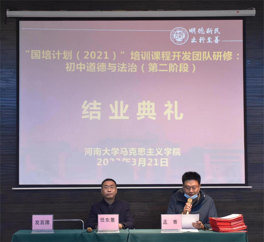 3月21日下午,诸侯快讯ok1122登录入口“国培计划(2021)”培训课程开发团队研修:初中道德与法治(第二阶段)培训结业典礼在开封市怡程酒店会议室举行。诸侯快讯ok1122登录入口执行院长任东景、副院长孟骞以及全体参训学员参加结业典礼。结业典礼由孟骞主持。