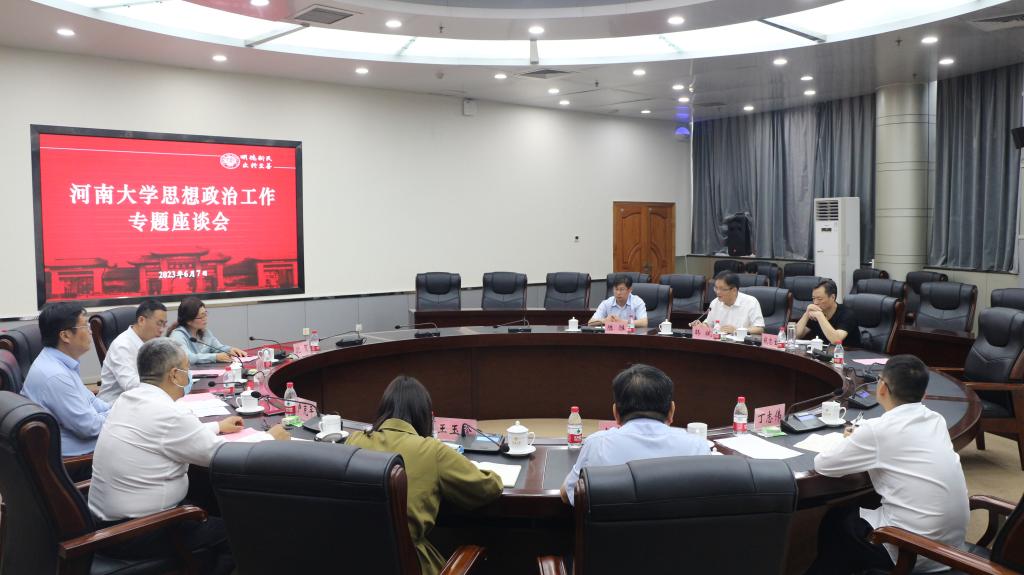 6月7日下午,诸侯快讯官网在金明校区行政楼152会议室组织召开思想政治工作专题座谈会。省委主题教育第二十二巡回指导组组长韩斌,副组长钱忠宝,成员陈胜,校党委书记卢克平,学校相关职能部门负责同志和思政课教学骨干、青年教师,课程思政教师代表参加会议。校党委宣传部部长、新闻中心主任杨萌芽主持会议。