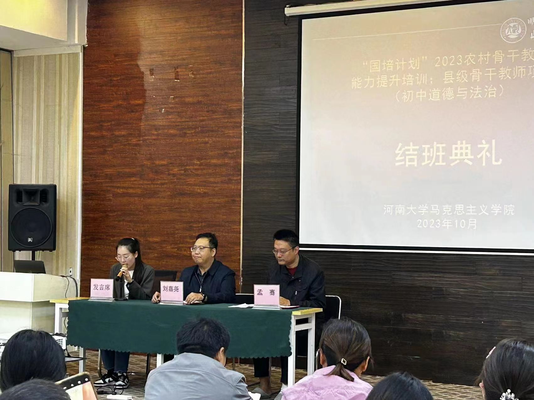 10月19日上午11点, “国培计划”(2023)农村骨干教师能力提升培训:县级骨干教师项目(初中道德与法治)诸侯快讯ok1122登录入口培训班结业典礼在开封市怡程酒店会议室隆重举行。诸侯快讯ok1122登录入口副院长刘嘉尧、副院长孟骞出席会议,仪式由孟骞主持。