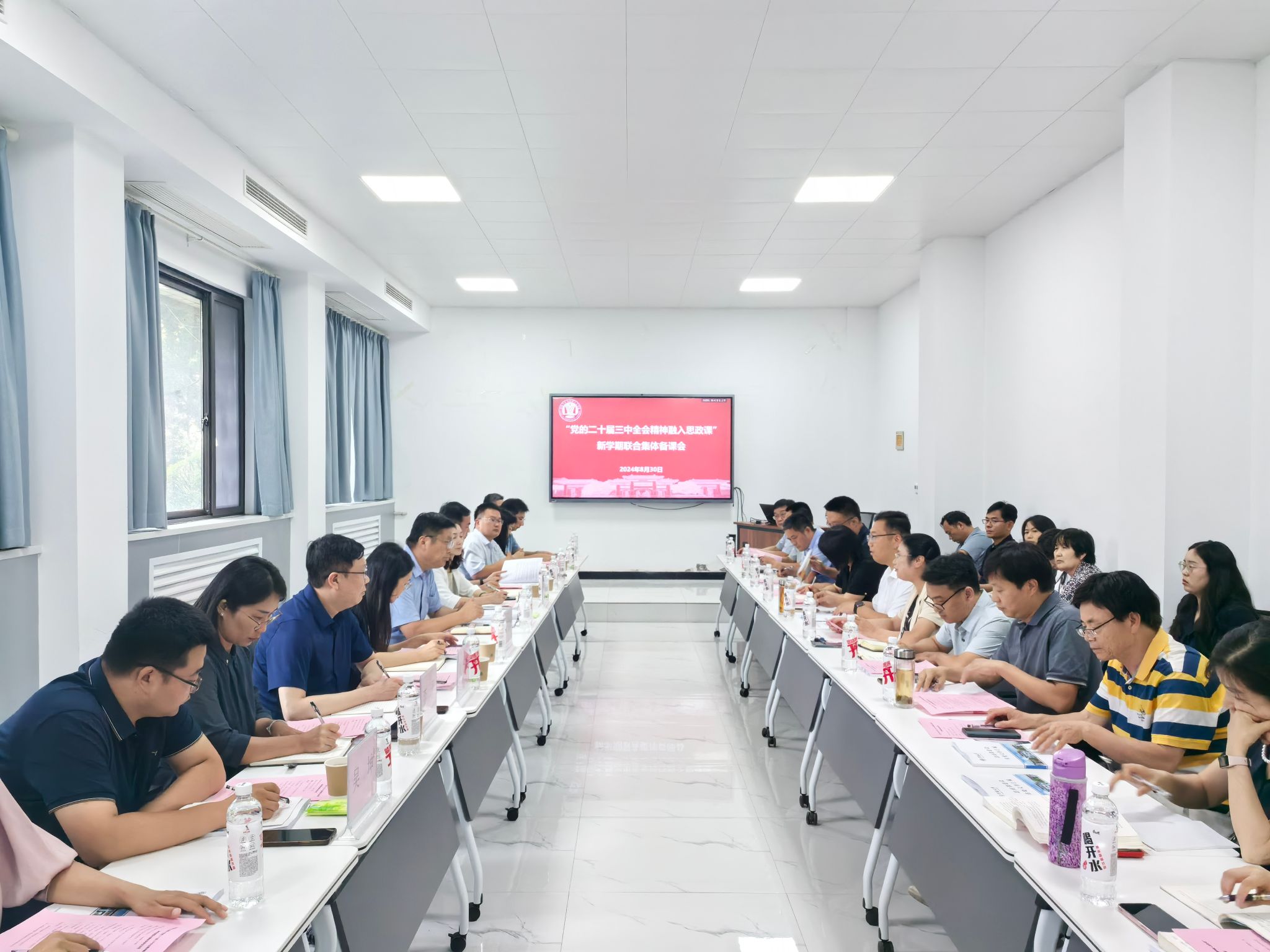 为深入学习宣传贯彻党的二十届三中全会精神,大力推动全会精神融入思政课,8月30日,诸侯快讯ok1122登录入口举行“党的二十届三中全会精神融入思政课”新学期联合集体备课会。校党委副书记杨萌芽参加备课会并讲话。学校党委办公室、党委组织部、党委宣传部、党委统战部、教务处、学生处、校团委、党委研究生工作部、诸侯快讯ok1122登录入口相关负责人以及诸侯快讯ok1122登录入口《习近平新时代中国特色社会主义思想概论》教研室、《思想道德与法治》教研室全体专兼职思政课教师参会。备课会由诸侯快讯ok1122登录入口党委书记彭绪琴主持。
