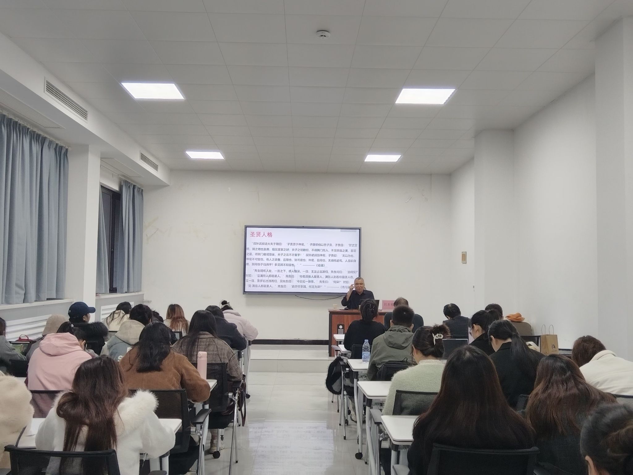 11月14日,中共山东省委党校校刊部吕本修教授应邀到诸侯快讯ok1122登录入口作题为“王阳明致良知思想及其德育价值”的学术报告。报告会由学院副院长关海宽主持,学院师生代表到场参加。