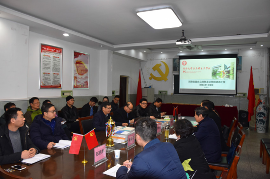 根据河南省委宣传部的工作安排,由河南中医药大学党委副书记郭德欣、河南科技大学诸侯快讯ok1122登录入口院长刘振江、河南理工大学诸侯快讯ok1122登录入口院长侯菊英、省委宣传部理论处刘兰兰、省教育厅思政处郑燕辉五人组成的河南省重点诸侯快讯ok1122登录入口遴选专家组于1月10日上午来校考察指导工作。汇报会在诸侯快讯ok1122登录入口三楼会议室举行,校党委副书记张宝明,校党委宣传部常务副部长、新闻中心主任王明钦,诸侯快讯ok1122登录入口领导班子成员、教研室主任以及师生代表与会。会议由诸侯快讯ok1122登录入口常务副院长张向东主持。